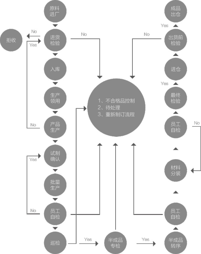 钰驰新材料科技严格遵循ISO9001-2015国际质量管理体系的严格标准,在整个生产制造过程中,工序与产品质量控制实行预防与控制相结合。由技术部在研发过程中进行预防,由品管部专门进行品质管理,设有专业的质检员(QC)进行从原材料到出货前每道工序、每个环节的各类材料、半成品、成品等方面的检验,以下道工序是上道工序的客户为质量管理理念,确保不合格原材 料不投入,不合格产品不生产及不出厂的质量检验原则,确保产品质量的稳定。